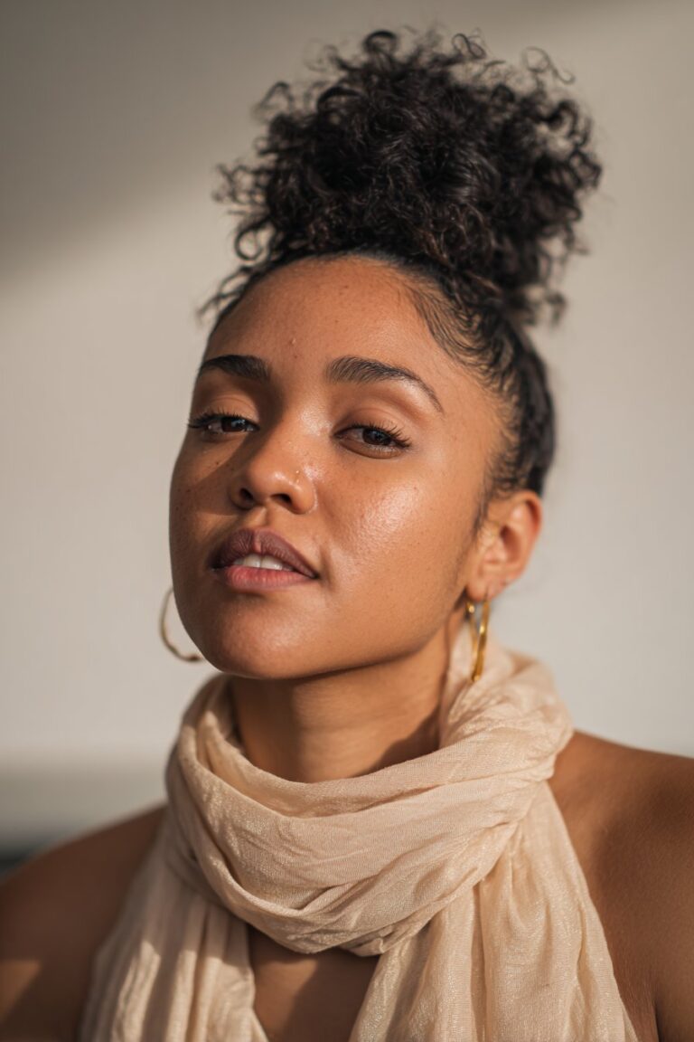High buns work wonders for round faces by drawing the eye upward and elongating features. Oval faces look gorgeous in high, ballerina-esque topknots. This versatile style flatters most face shapes when positioned correctly.